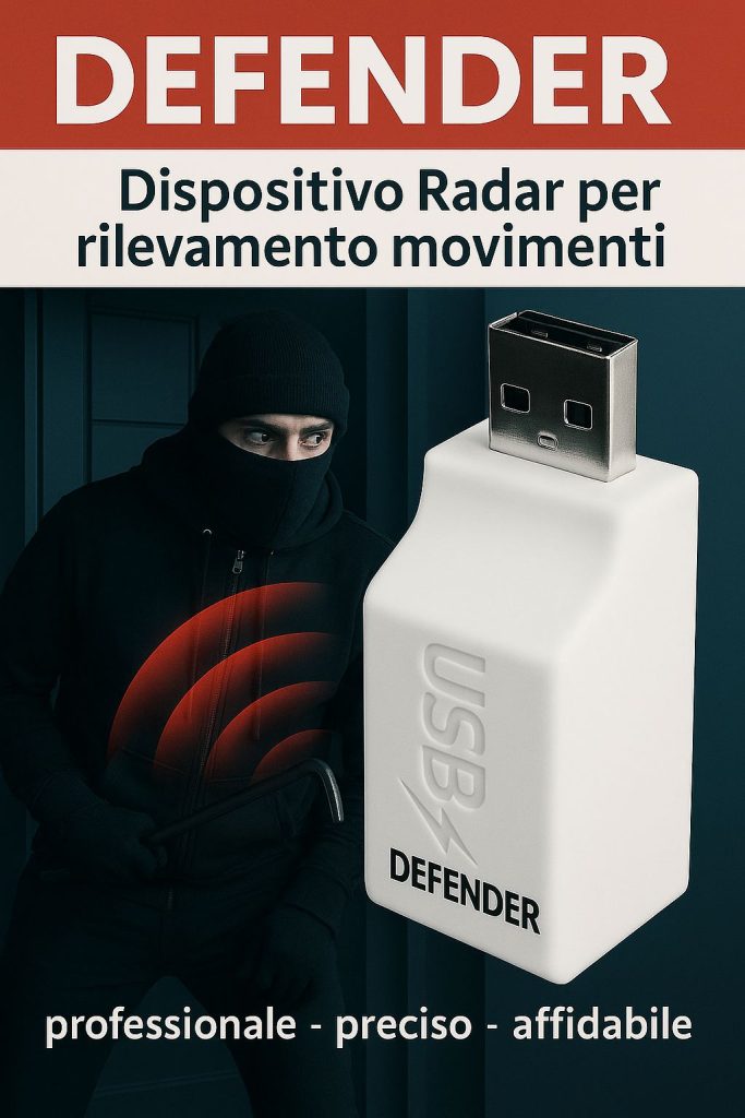 Il nuovo allarme volumetrico Defender rileva movimenti con estrema accuratezza grazie alla tecnologia radar, molto più affidabile rispetto ai comuni sensori volumetrici in commercio